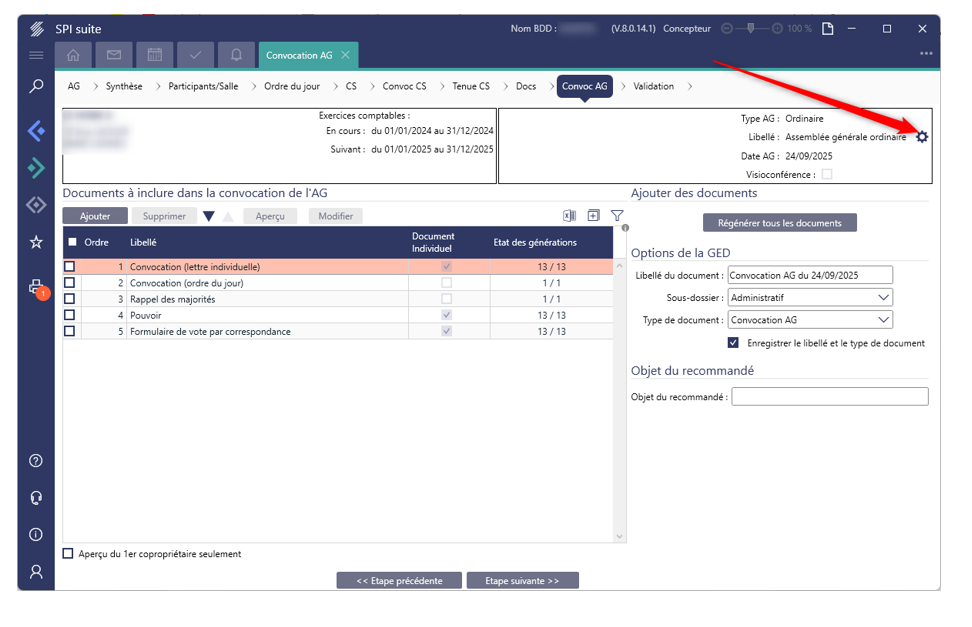 - Si la convocation n’est pas validée, double cliquer sur la ligne de la copropriété concernée.