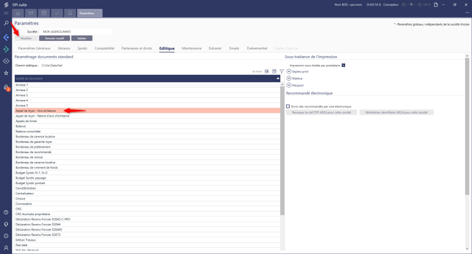 - Double cliquer sur le document Appel de loyer – Avis d’échéance