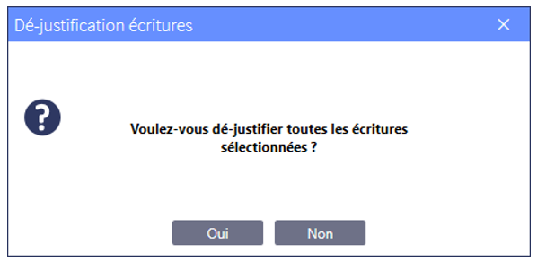 Cliquer sur OUI à la question « Voulez-vous dé-justifier toutes les écritures sélectionnées ? »