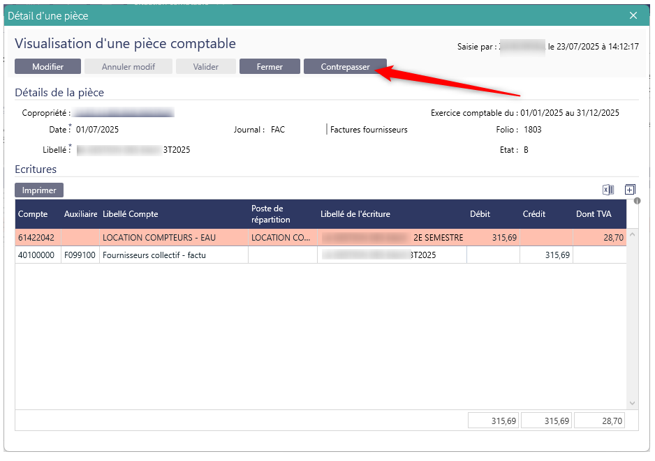 Ensuite il faut double cliquer sur la ligne de la facture pour la contrepasser :