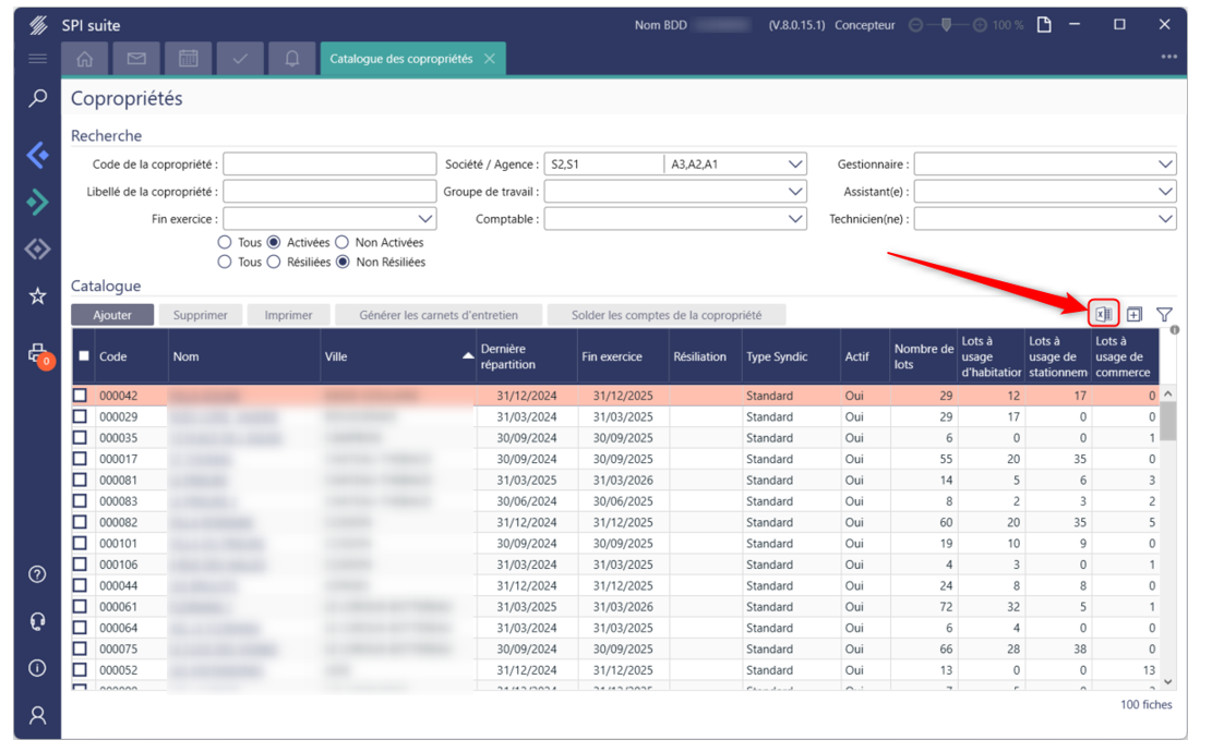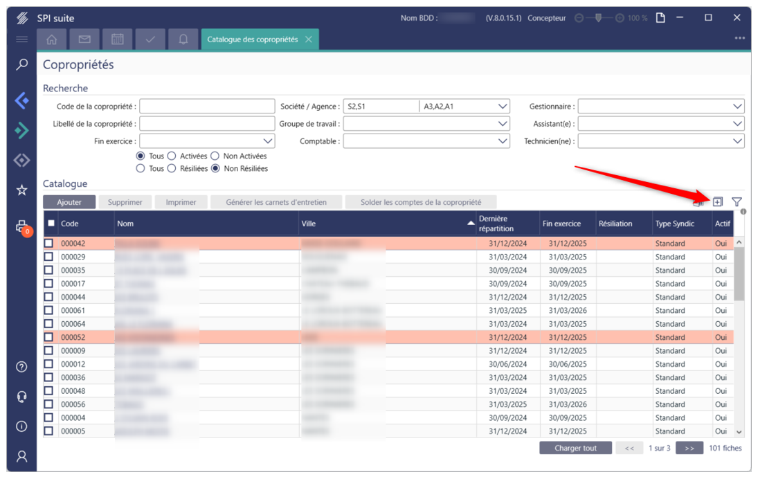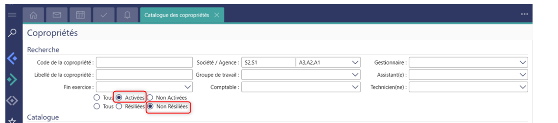 Dans les filtres en haut cocher que les copropriétés activées et non résiliées :