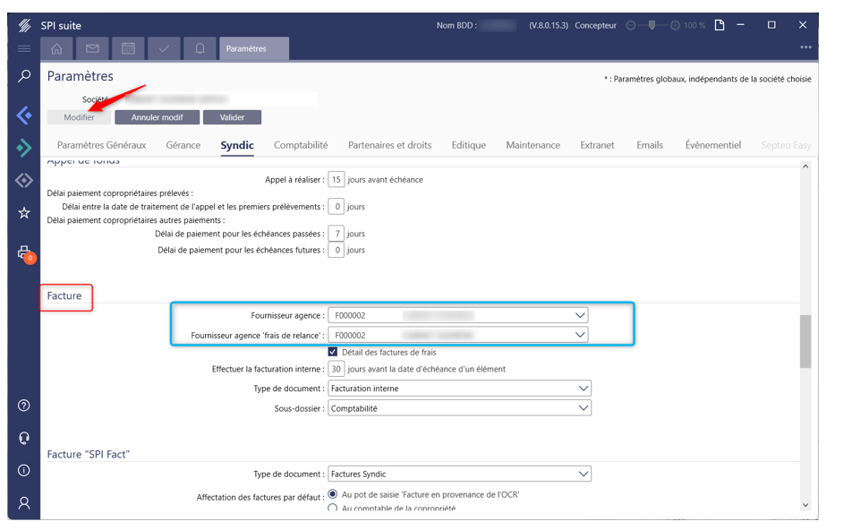 - Changer le fournisseur dans « Fournisseur agence » et dans « Fournisseur agence « frais de relance » »
