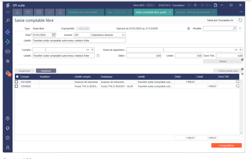 Ensuite faire une écriture en OD dans le module saisie comptable libre pour transférer le solde déjà comptabilisé :