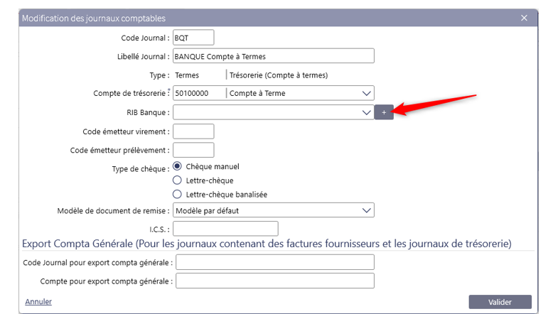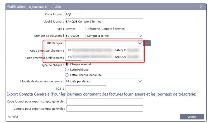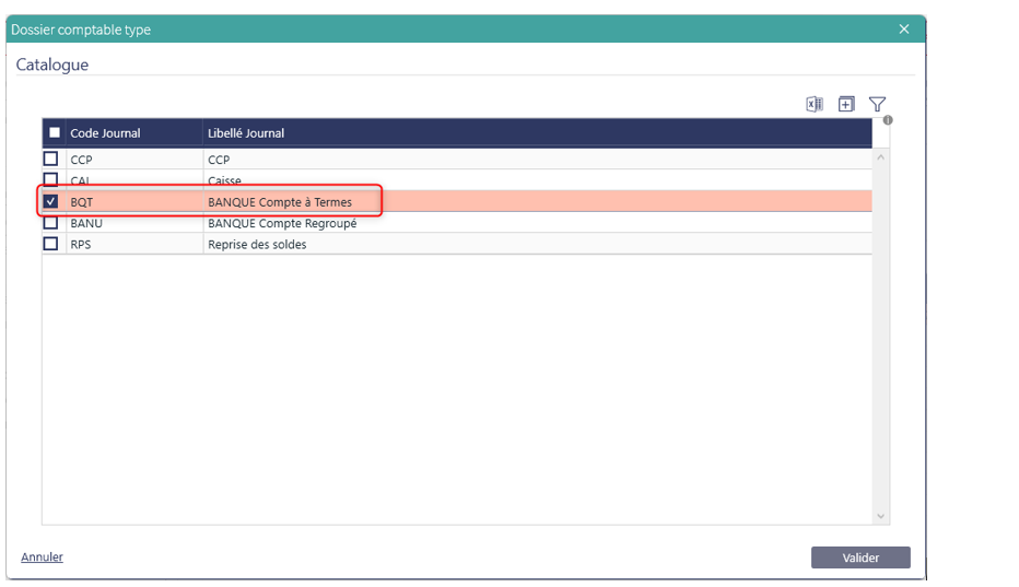 - Une fenêtre s’ouvre, cocher le journal BQT BANQUES Compte à Termes :