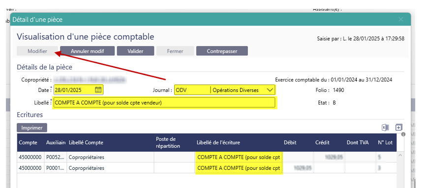Comment modifier le libellé, la date, le journal d’une pièce comptable et des écritures comptables ?
