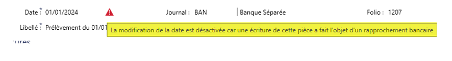 Les zones ne seront plus modifiables si la pièce est validée sur un exercice clos ou pointée sur un rapprochement bancaire pour les pièces du journal BANQUE.