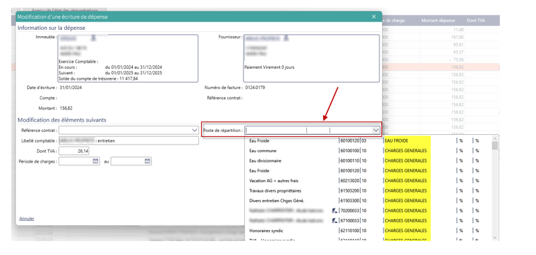 Double cliquer sur le libellé de la facture une fenêtre va s’ouvrir et vous pourrez ainsi modifier le poste de répartition rattaché à la facture.