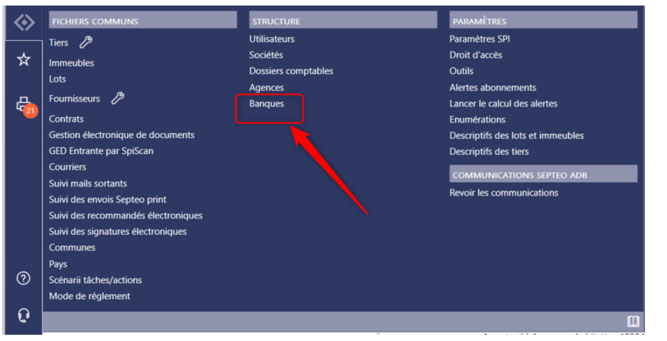 - Cliquer sur Banques