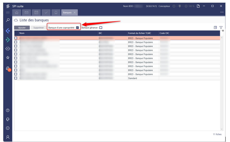- Cocher en haut du tableau « Banque d’une copropriété » :