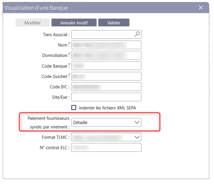 - Mettre « Détaillé » dans PAIEMENT FOURNISSEUR SYNDIC PAR VIREMENT :