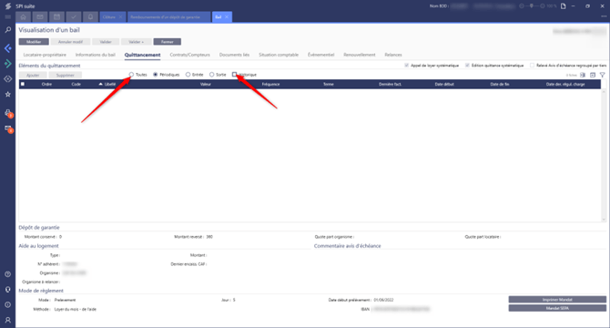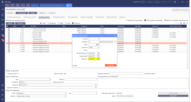 - Onglet « Quittancement » pour afficher toutes les prestations