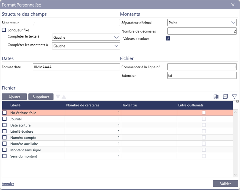 Il faut paramétrer le format des données exportées selon les préconisations de votre logiciel comptable.