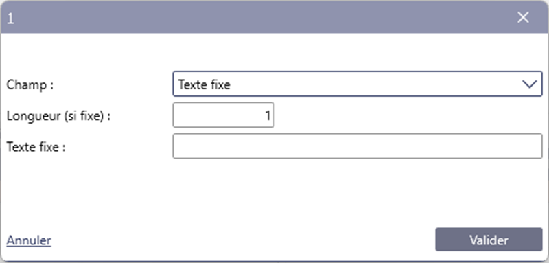 - le texte fixe : si on a choisi le champ « Texte fixe »