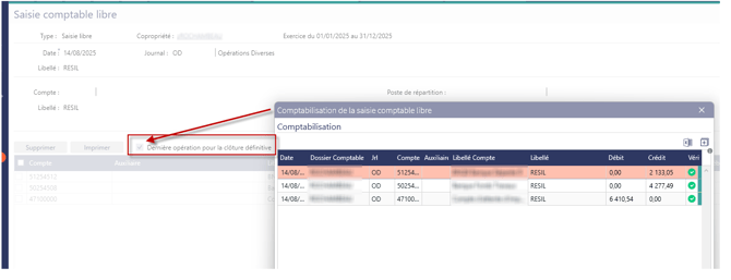 Après cette dernière opération, il ne sera plus possible de saisir des écritures sur la copropriété.
