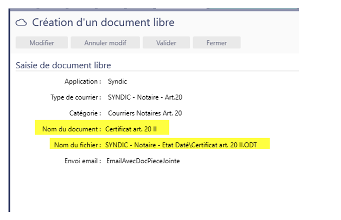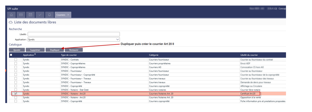 Créer le courrier Certificat Art. 20 II depuis le menu Syndic-> Roue crantée-> Courrier : Dupliquer le courrier certificat Art. 20