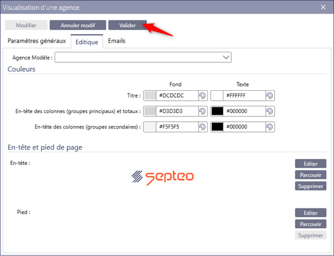 La modification sera apportée à tous les courriers que vous éditerez pour l’agence concernée.