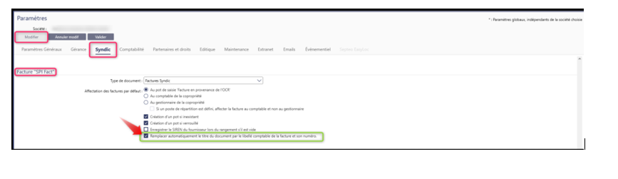 - Cocher la case « remplacer automatiquement le titre du document par le libellé comptable de la facture et son numéro »