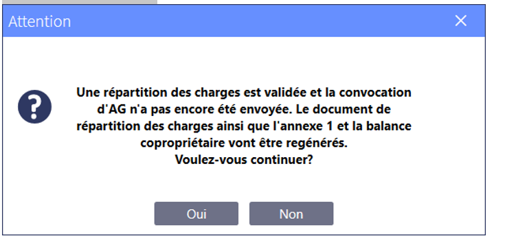 Lors de la saisie de la vente, un message vous sera présentez vous avertissant qu’une répartition de charges est validé :